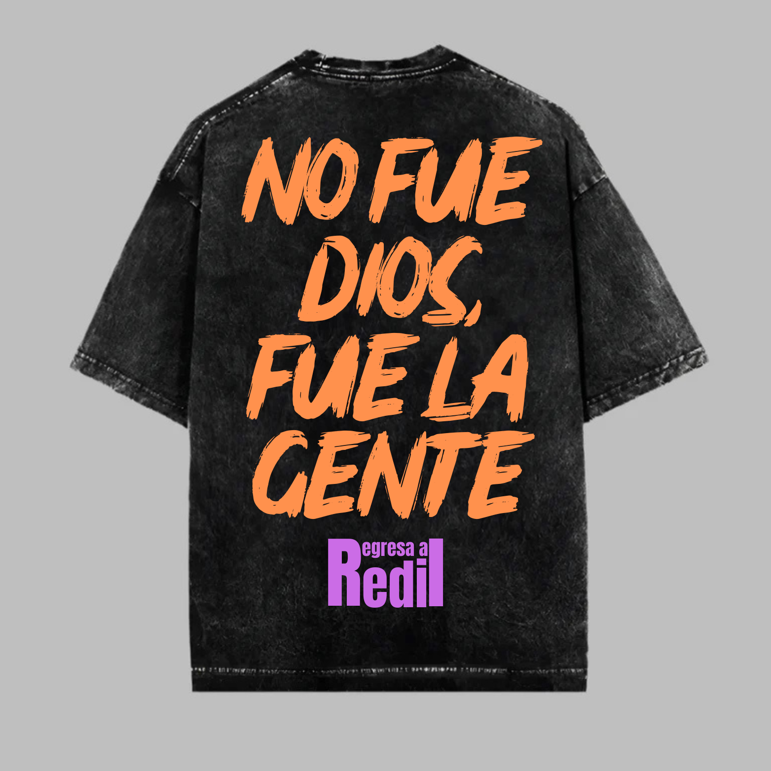 Camisa Slightly Oversize “No Fue Dios Fue La Gente” Negra Acid Wash